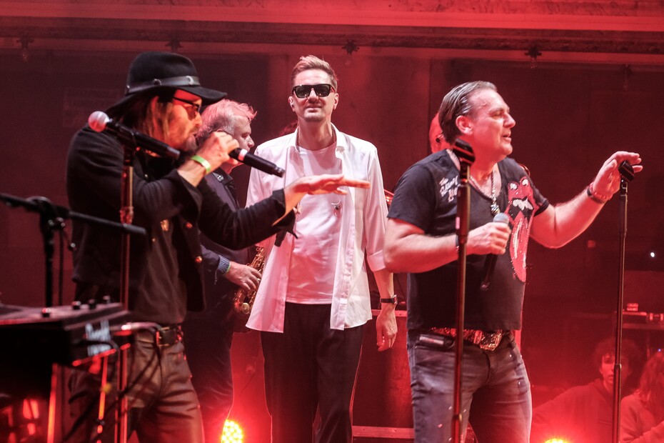 To se projevilo, když Dan Bárta přišel na pódium jako jeden z hostů večera. Skladbu Ty ho vidíš, Otavo má, proměnil v nadpozemskou vokální exhibici, která přiváděla publikum k šílenství. Ten flazet byl jak z jiných sfér! Zazpíval si i O lidech řekla Míša a na pódiu se objevil i v závěru ve skladbě Bulhaři. Jako další hosté se představili Orion a Vladimir 518 v songu Sláva nazdar výfetu a Matěj Ruppert v songu Žárlíme na Romana, který také pokřtil druhé sólové album Romana Holého nazvané Strážce klidu vol. 2. V závěru se ještě na pódiu objevil Vojtěch Dyk, kerý v hitu Jsem pohodlný předvedl opravdu skvělou interakci s tenorsaxofonistou Františkem Kopem. To byl čistý hudební zážitek.