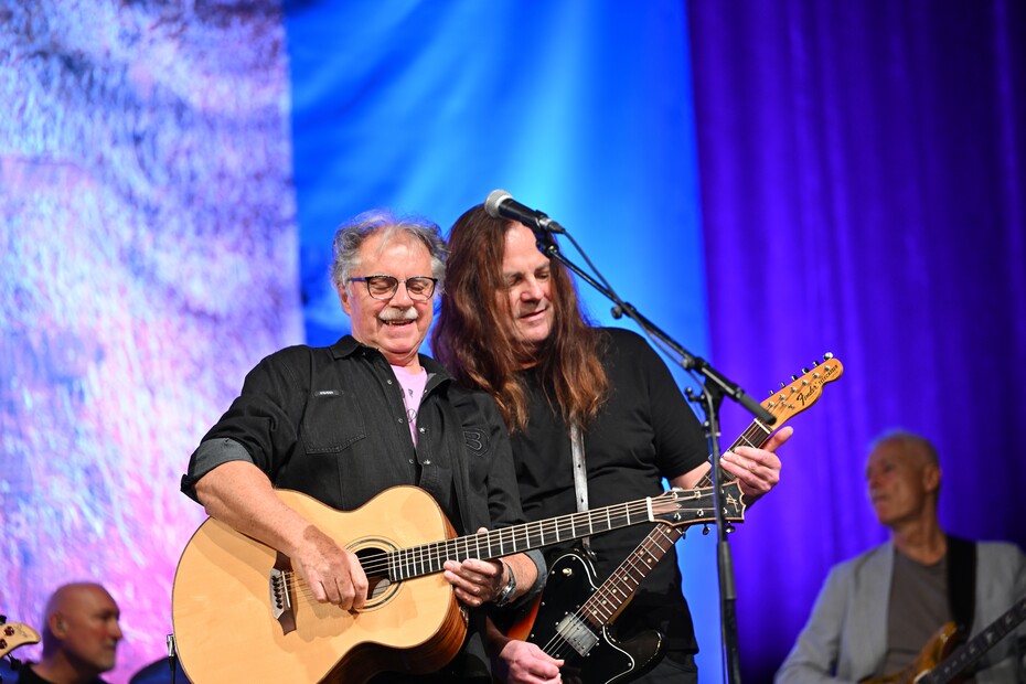 Druhý směr trochu překvapil. Blues rock! Ono se to docela hodí ke zmíněné atmosféře starého, moudrého muže. A když jeden z hostujících kytaristů Péci Uherčík v písni Túto noc spustil elektrické blues, byli jsme rázem v sedmdesátkách, v době, kdy se pojil rock, písničkářství a blues do jednoho emocionálně silného celku. Bluesrocková linka, která si mimochodem dobře rozuměla s melodickým písničkářstvím, vrcholila jamem, v němž se Hammel obklopil vedle Buriana ještě dalšími třemi kytaristy, saxofonistou a vokalistkou Andreou Zimanyovou a na bázi svých písní dovolil muzikantům, aby se předvedli a s chutí si zasólovali. Koncertu to dodalo velmi příjemnou, bezprostřední atmosféru.
