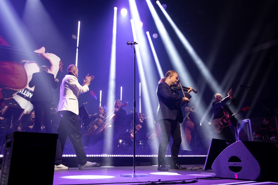 Malá orchestrální předehra a na pódium přišli Radečci. Odstartovali svou stařičkou písní Pan Kristián, v níž se sound kapely konečně smísil se zvukem orchestru. Nutno říct, že Moravská symfonie Olomouc pod vedením Stanislava Vavřínka odvedla výtečnou práci a zvukově vyváženě dokázala s citem doprovázet popovou kapelu. Problém byl jedině v tom, že její doprovod by při dnešních možnostech patrně zvládly jedny dobře naprogramované klávesy. Jistě, živý orchestr je víc a podtrhuje ambicióznost valentýnského projektu, ale při vděčnosti radeččího publika by to bylo levnější.