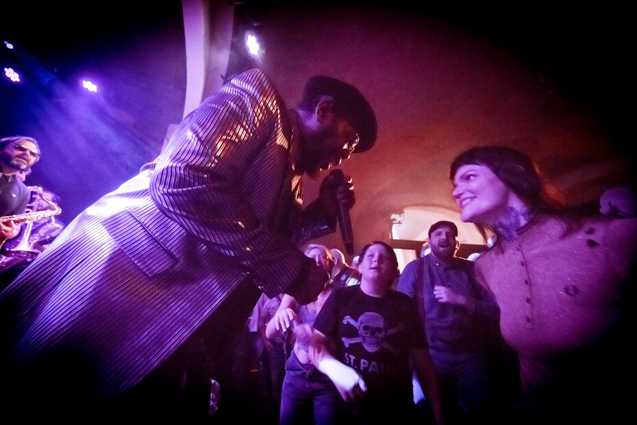 Mr. Symarip je nejen zpěvák, ale i bavič, který dovede pracovat s publikem do nejmenších detailů. Nejprve nechal nechal kapelu zahrát několik šťavnatých instrumentálek projektu Boss Foundation britského producenta Neila Andersona, než se laskavě dostavil na scénu v předklonu a v lesklém obleku. Díky němu připomínal víc nějaké megabroukovité stvoření z obrazů pro Vetřelce od H.R. Giegera než stařičkého černocha původem z Kingstonu.