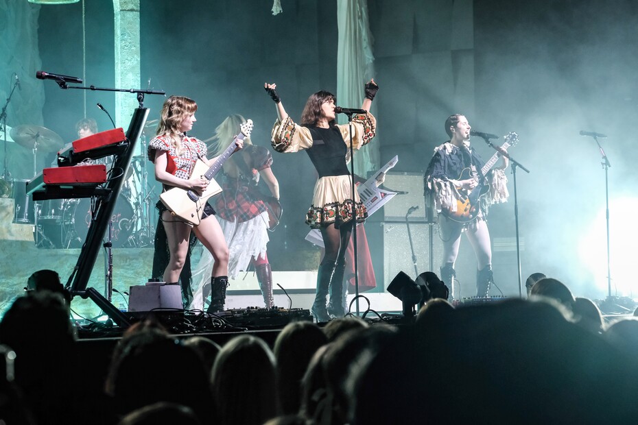 Zpět k samotnému koncertu, v jehož průběhu zazněly téměř všechny skladby z obou alb kapely. Kapela bohatý set otevřela první skladbou z druhého alba From the Pyre, tedy songem Agnus Dei. Abigail Morris tančila po jevišti a zpívala o radostném fatalismu „Přichází apokalypsa a nemůžu se jí nabažit“. Každé její gesto a každá pirueta vyvolávaly nadšení publika. Následovala ne úplně milostná píseň Count the Ways, do které vstoupila kytaristka Emily Roberts svými drsnými riffy na bronzovou kytaru, aby hned od začátku prokázala, proč je považována za indie kytarovou hrdinku nové generace. Přes energické pecky jako Caesar on a TV Screen nebo Second Best se set zhruba ve své polovině dostal do emotivnější části, ve které nástroje ustoupily vokálům. Když se při folklórně laděné Woman Is a Tree spojily hlasy všech pěti žen ve výkřiky bolesti, mělo to sílu schopnou odtlačit první řady pod pódiem do hloubi sálu. I následující skladba Gjuha, což v albánštině znamená Jazyk, která reflektuje vztah klávesistky Aurory Nishevci k jejímu mateřskému jazyku, také přinesla hluboké emoce, úžasné vícehlasé vokály a také Emilyn doprovod na mandolínu. Po poslední skladbě základní hrací doby, kterou byl hit Nothing Matters doprovázený koordinovanými tanečními pohyby všech členek kapely, samozřejmě nemohl chybět přídavek ve formě krásné skladby This Is the Killer Speaking a reprízy úvodní Agnus Dei.