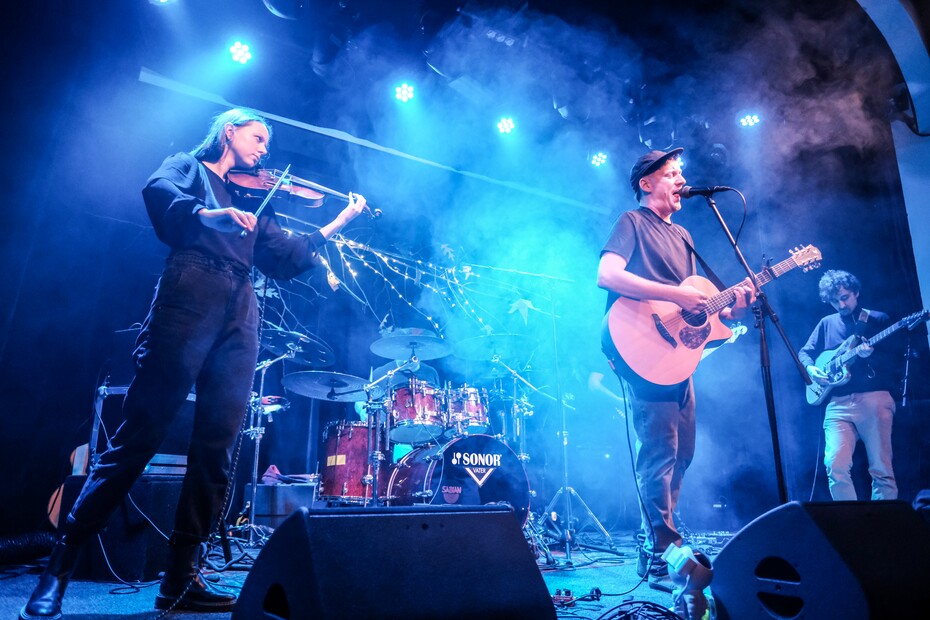 Wóďovu tvorbu znám dobře. Jeho osobitá městská poetika, načichlá Malou Stranou, ale i punkovým étosem, je věc, kterou člověk buď miluje, nebo ho mine. Sólo či v duu s houslistkou Terezou Stejskalovou jsem ho slyšel několikrát, a byly to intimní, syrové a autentické momenty. Tentokrát ale přišlo něco jiného.